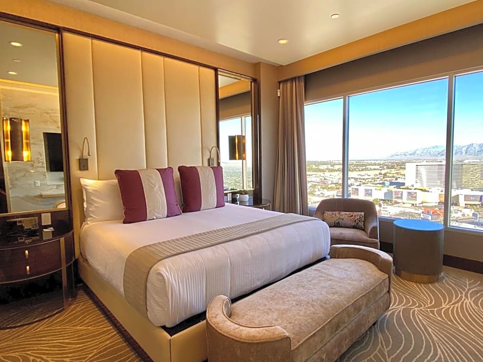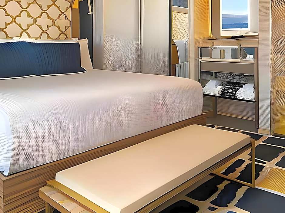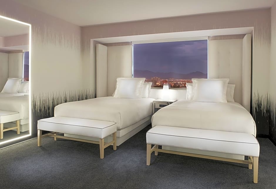 Double your comfort with swanky queen beds, additional seating, a mini fridge and a designated work station in a glam, modern space that’s all yours for the taking. Enjoy a more restful sleep with luxury blackout curtains that allow you to enjoy the interior ambiance. A luxury shower and spa-inspired amenities are the cherries-on-top to completing all 360 square feet of this contemporary space.