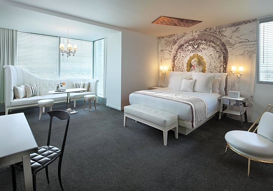 Free WiFi and a flat-screen TV are just some of the modern amenities in this luxurious room. A glass-enclosed shower and free spa toiletries are featured in the private bathroom. Playful, yet elegant finishes are styled throughout.